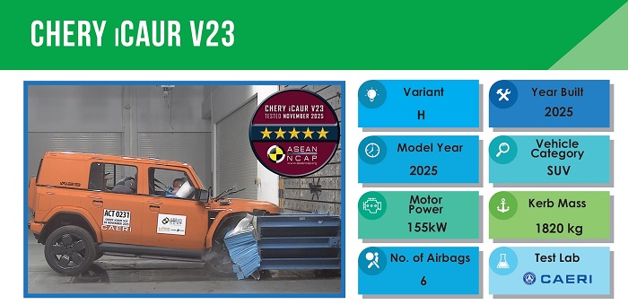 图为iCAR V23获得东盟五星安全认证(ASEAN NCAP)